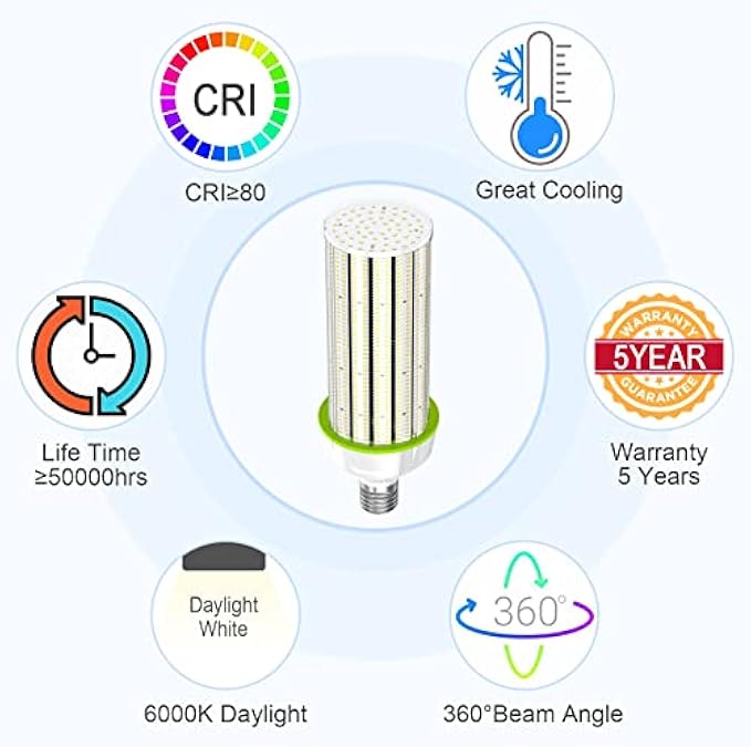 250W LED Corn Light Bulb, ETL Listed 480V E39 Led Corn Cob Bulb Retrofit Lamp 6000K 36000LM Warehouse Lighting[1000W Equivalent] Factory High Bay Large Area Light