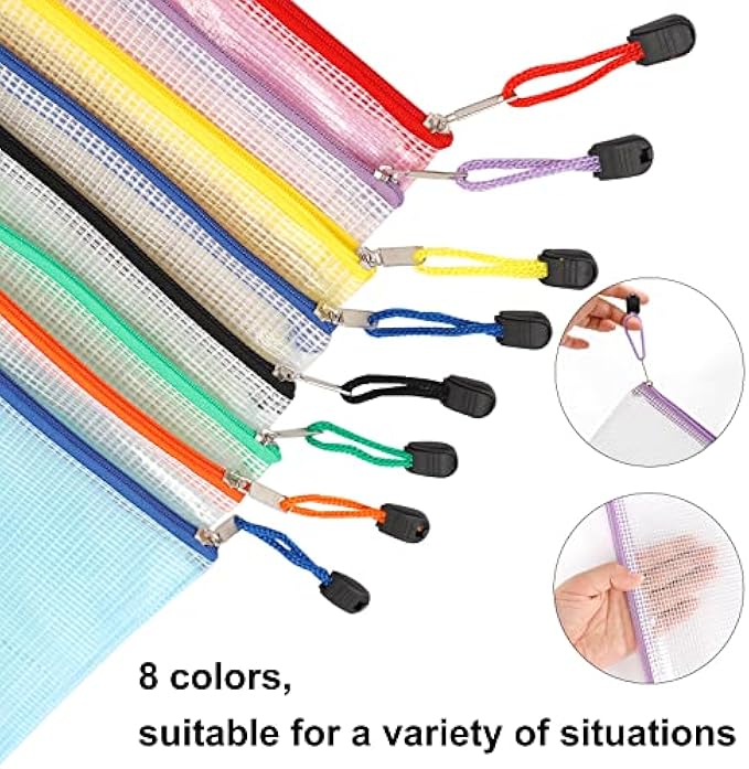 EOOUT 16pcs Mesh Zipper Pouch Document Bag, Zipper Bags for Organizing, Waterproof Zip File Bags, Letter Size, A4 Size, for School Office Supplies, Storage Bags, 8 Colors