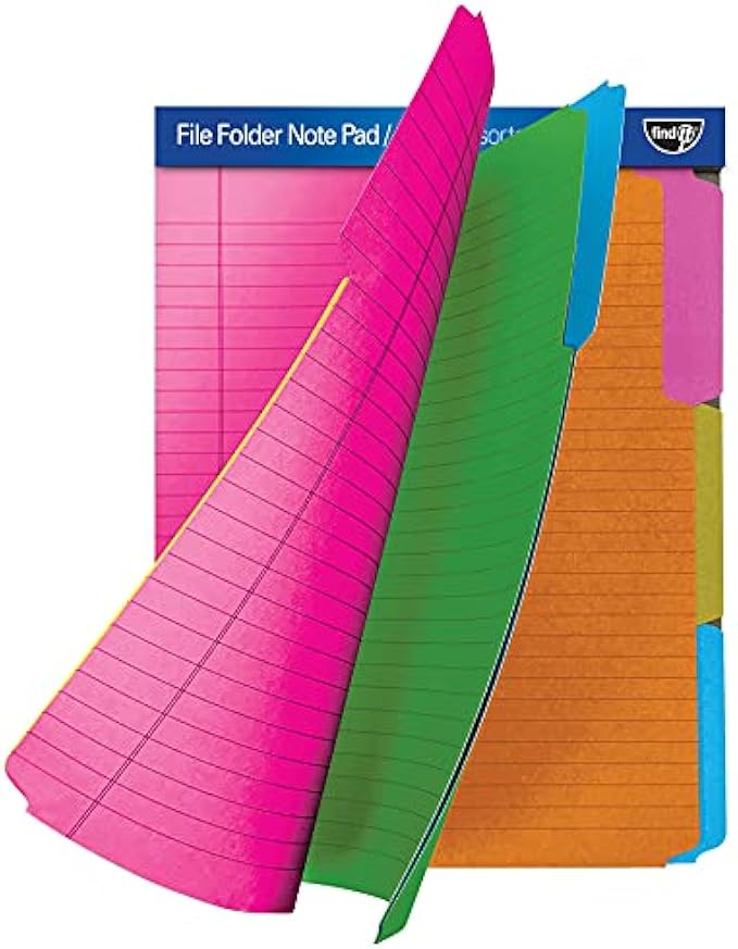 • 12 FOLDERS - Enjoy 12 assorted third-cut file cabinet folders in each pad. The perforated top allows you to simply tear and file your notes easily and efficiently.